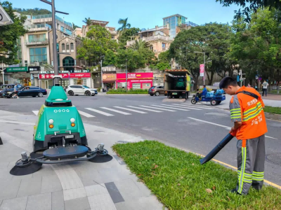采用"小型路面清洗机 清扫机器人"组合作业,前端冲洗设备将路面垃圾冲至道路侧缘,后方机器人同步跟进清扫,保洁员巡查补位处理清洁死角。通过"冲洗-清扫-补漏"的闭环作业链,实现道路边沿、绿化带接口等易忽略区域的全面覆盖。